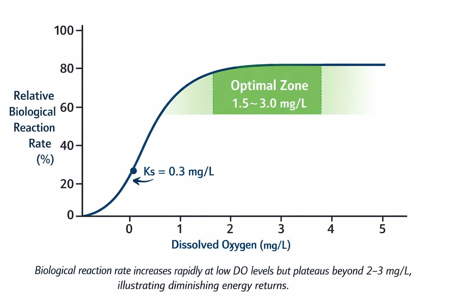 این توضیح می دهد که چرا اکثر تصفیه خانه ها هدف قرار می گیرند 1.5-3.0 میلی گرم در لیتر DO .